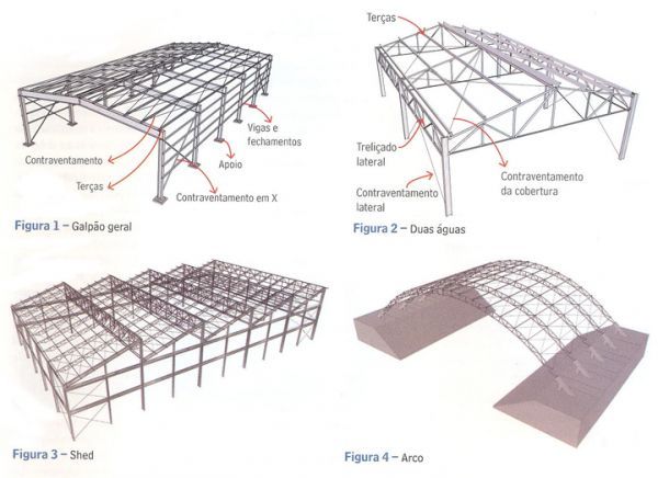 Para estruturas leves: perfis laminados até 200 mm e perfis de chapas dobradas;